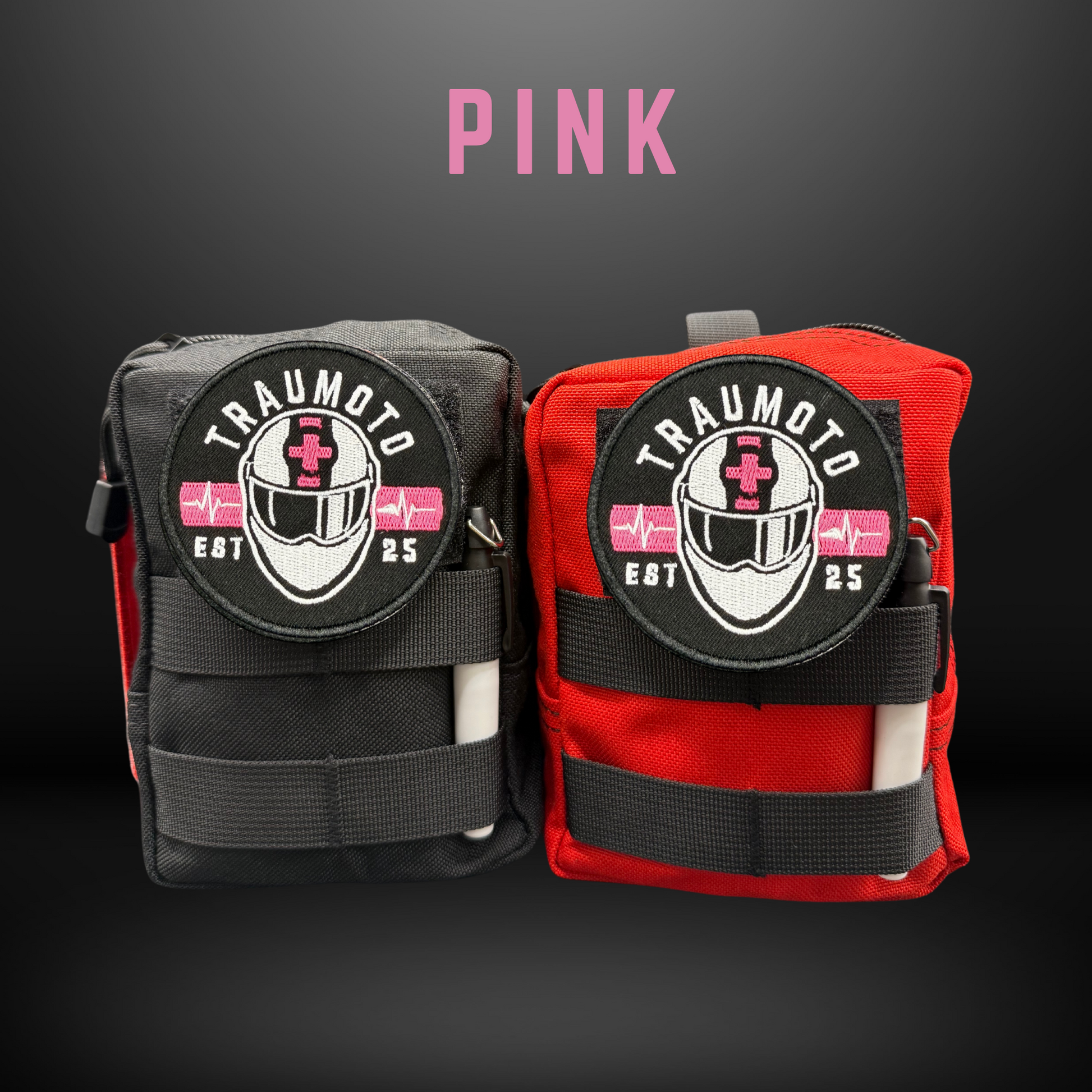 Add a splash of identity to your kit. These 3x3" colored patches are designed to fit all standard Traumoto bags and gear, featuring durable stitching and hook-and-loop backing for instant attachment. Want to go permanent? With a little modification, they can be sewn or ironed onto jackets, vests, or bags.